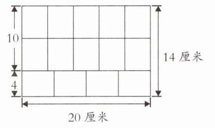 @@解析 大长方形的长20 = 4×5,则可在大长方形的长边按小长方形的长或宽裁剪;大长方形的宽14 = 5×2 + 4,则可在大长方形的宽边裁剪出2个小长方形的长和1个小长方形的宽,从而确定裁剪方式。