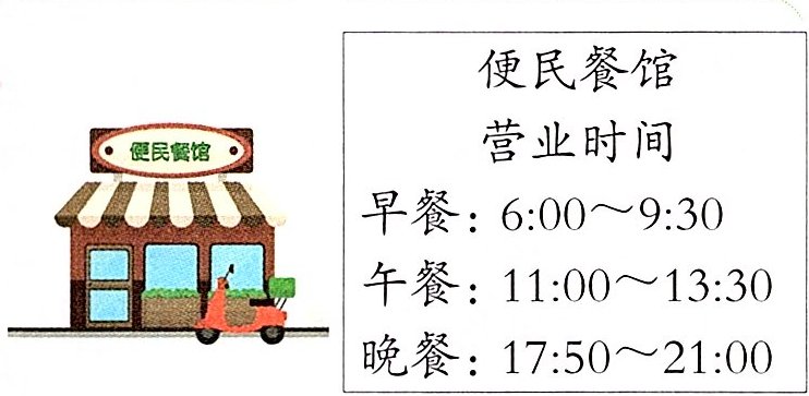 (1)便民餐馆晚上的营业时间是从下午______到晚上______。