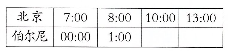 (1)经过计算分析可知,北京时间与瑞士首都伯尔尼的时间相差7小时,因此把北京时间减去7时即可得出相应的伯尔尼的时间。