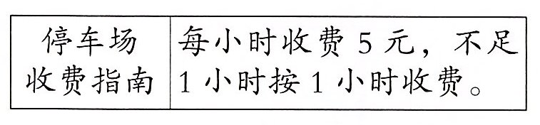 解析 求王叔叔需要支付停车费多少元,需要先求出王叔叔停了多长时间的车。停车时间 = 离开停车场的时刻 - 进入停车场的时刻,下午1:20是13:20,13时20分 - 10时50分 = 2时30分。已知每小时收费5元,不足1小时按1小时收费,30分钟不足1小时,按1小时计算。因此需要支付2 + 1 = 3(时)的停车费,列式计算为3×5 = 15(元)。