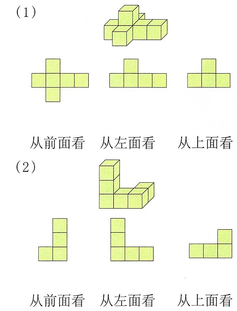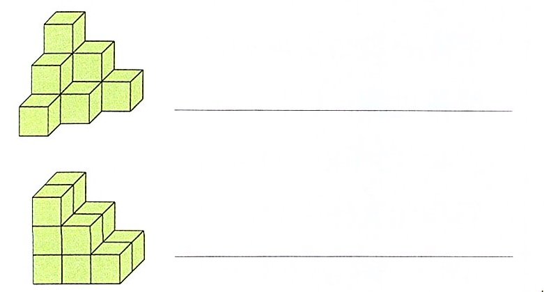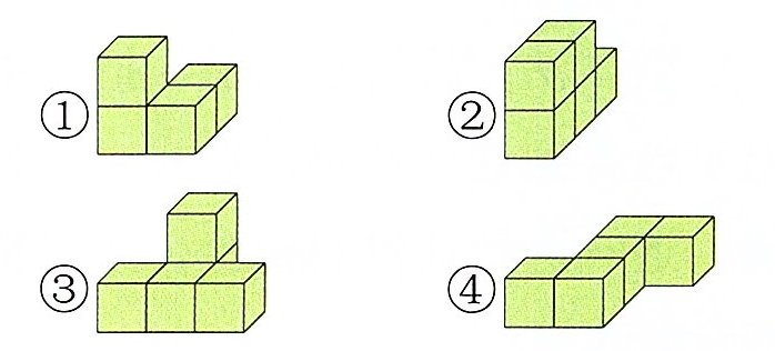 4. 下面的物体分别是由几个小正方体搭成的?列式算一算。
