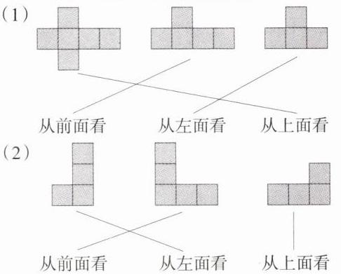 1. 下面的图形分别是从什么位置看到的?请你连一连。