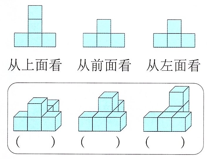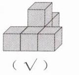3. 下面是从不同位置观察同一个物体所看到的图形,哪个物体符合要求?在( )里画“√”。