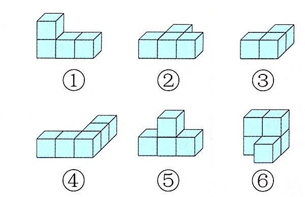 (1) 这 3 个物体从( )面和( )面看到的图形相同,把它们画出来: