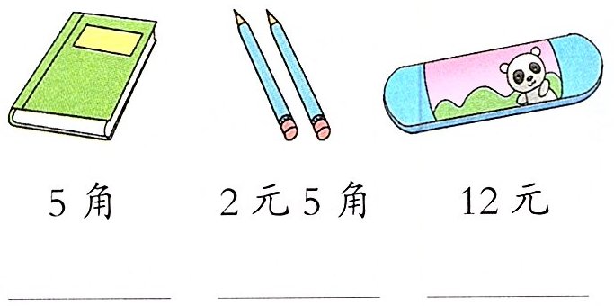 3. 给下面的物品加上价签(以元为单位,用两位小数表示)。