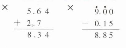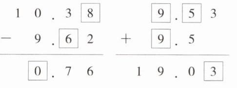 $5.8\mathrm{m}+4.15\mathrm{m}=9.95\mathrm{m}$@@$6.05\mathrm{t}-0.65\mathrm{t}=5.4\mathrm{t}$@@$10.7$元$-8.08$元$=2.62$元