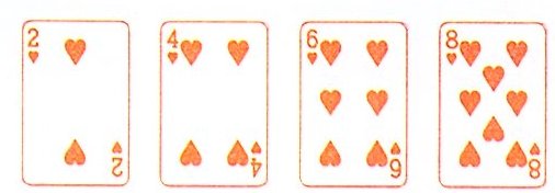 5. 用下面 4 张扑克牌上的点数计算得到 24,至少写出两种方法。