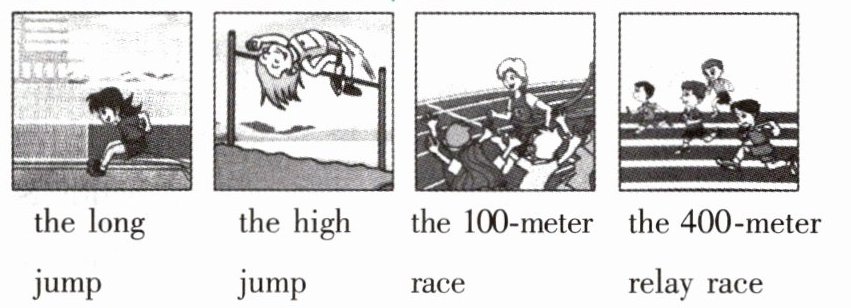 It was sunny yesterday. Our school held a spring sports meet. There were four events for both boys and girls. They were the long jump, the high jump, the 100 - meter race and the 400 - meter relay race.