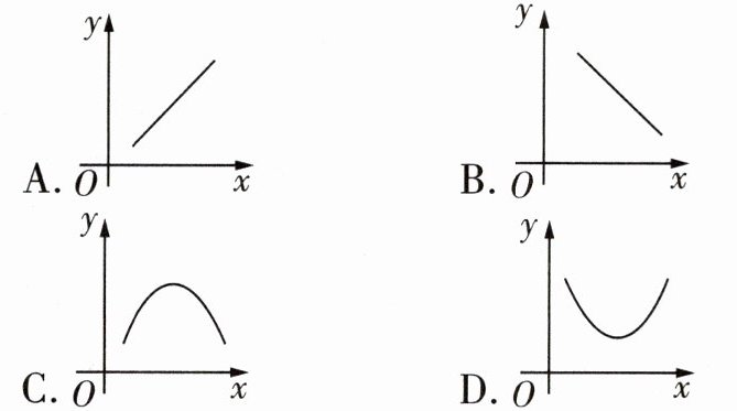3 [新考法·图文转换题] Which may describe the relationship between negative(负面的) feelings and the level of cortisol? ($x$ = negative feelings, $y$ = the level of cortisol)