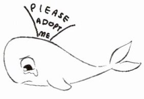 Ollie drew a sad whale, and I wrote the words "PLEASE ADOPT ME" in the 3 of a whale spout(鲸喷出的水柱).