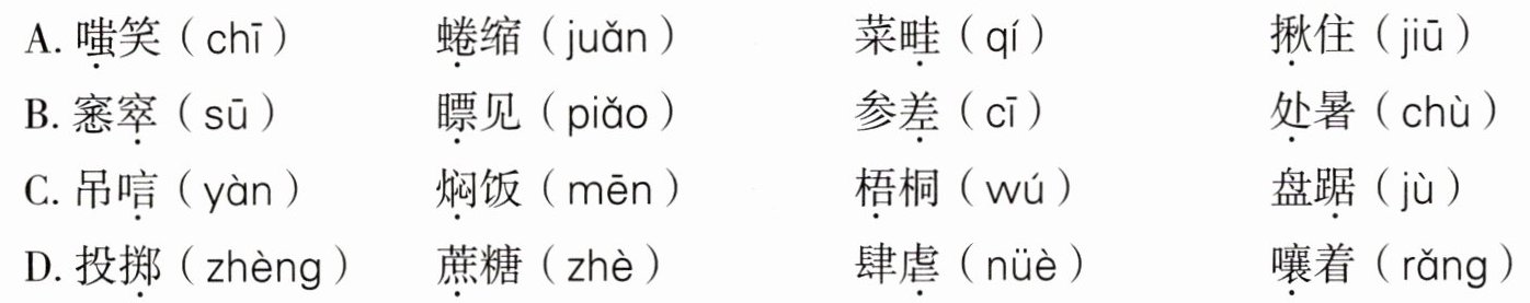 4下面每组词中,加点字的读音完全相同的一组是( )。