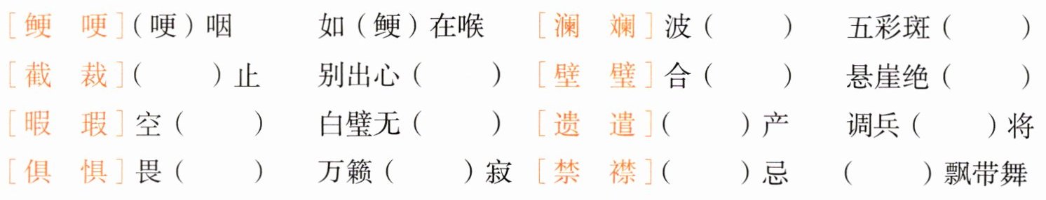 6. 澜 斓 截 裁 璧 壁 暇 瑕 遗 遣 惧 俱 禁 襟