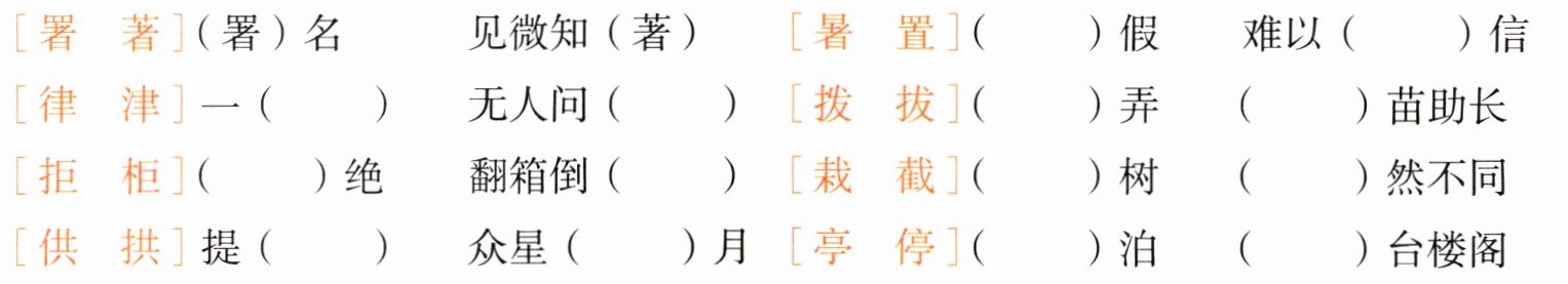 5. 暑 置 律 津 拨 拔 拒 柜 栽 截 供 拱 停 亭