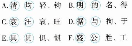 1. 圈出每组词语中的两个错别字,把正确的字写在后面的括号里。