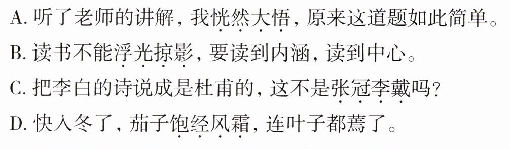 。D.游西湖时,突然下起淅淅沥沥的小雨,我们依然