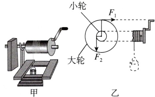 8. 古代典籍 [2024·北京期末,多选]中国古代五大农书之首《齐民要术》中记载:“井浅用桔槔,井深用辘轳。”如图甲所示,人们借助辘轳从井中汲水时,转动摇把,使绳子在轴筒上不断叠绕,从而将水桶从井中提出,其工作原理如图乙所示。下列说法中正确的是( )