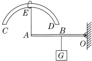 5.如图所示,在杠杆OA上的B点悬挂一重物G,A端用细绳吊在小圆环E上,且细绳AE 长等于圆弧CED的半径,此时杠杆恰好水平,A点与圆弧CED的圆心重合,小圆环E 从C点沿顺时针方向逐渐滑到D点的整个过程中,细绳对A端的作用力的大小 ( )