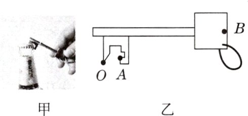 4. 如图甲所示是一个钥匙形“瓶起子”,图乙为其简化示意图,请画出阻力F₂的示意图,并在B点画出所用最小的动力F₁及其对应的动力臂L₁。