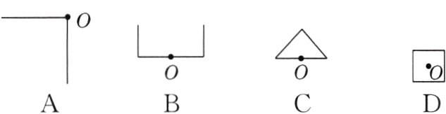 3.[2024·广州期中]如图,一根均匀直铁丝的重心位于图中的O点,把它弯折成选项中的图形后,重心标注符合事实的是 ( )