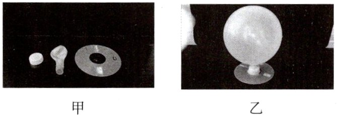 10.(小制作)[2024·太原模拟]小波同学用如图甲所示的一张光盘、一个气球、一个瓶盖(有一个小孔)和胶水(胶水未画出)制作了一个“气垫船”,将光盘放在水平地面上,轻推光盘,光盘在地面上滑动了很短的一段距离。如图乙所示,把气球吹鼓用手扭紧气球口,松开气球,气球中的气体通过小孔从光盘的中间向下喷出,轻推光盘,光盘在地面上滑行了较长一段距离。向气球里吹气后,轻推光盘,光盘滑行得更远的原因是____________________,此时桌面受到的“气垫船”对它的压力_______(选填“大于”“小于”或“等于”)气垫船的重力。