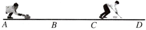 9.(体育赛事)如图所示,冬奥会冰壶比赛开始时,冰面粗糙程度相同,在AB段,投手用水平方向的力推冰壶,使冰壶在冰面上做匀速直线运动,人对冰壶的推力_______冰面对冰壶的摩擦力;撤去推力,在BC段冰壶所受摩擦力_______;在CD段,队友刷冰从而使摩擦_______。
