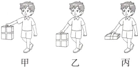 D.比较乙、丙两图,丙图中绳子对手的勒痕更深一些