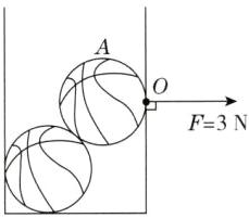 11. 如图所示,一个桶内放有两个篮球,篮球A对桶壁的压力为3 N,请在图中画出篮球A对桶壁压力的示意图(其中O为压力的作用点)。