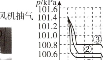 (3)当王老师将抽气的吹风机调换挡位后,图像中①②③三条图线出现了下移,由此可以判断,三节塑料管中气体的流速______。