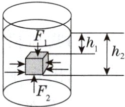3. [2024.南宁模拟]如图所示,装有水的柱状容器置于水平地面上,正方体物块浸在水中,其上表面与水面平行,若物块上表面受到水的压力为F₁、下表面受到水的压力为F₂、受到的浮力为F浮,则( )