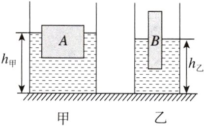 6.[2024·上海期中]盛有等质量水的轻质薄壁圆柱形容器甲、乙置于水平地面,均匀柱体A、B漂浮在水面上,如图所示。已知容器底面积S甲 > S乙,水深h甲 > h乙,水对容器底部的压力F甲________F乙,容器对地面的压力F容甲________F容乙,柱体的密度ρA________ρB。(均选填“>”“=”或“<”)
