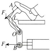 10. [2024·抚顺三模]如图所示是汽车刹车装置的简化图,请你在图中画出动力F₁的力臂L₁和作用在B点的阻力F₂。