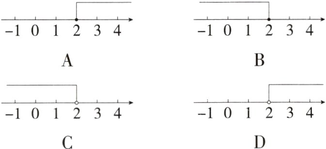 3.(2024江苏南通期末)不等式$\frac{x - 2}{3}-\frac{1}{2}\geqslant-\frac{x}{4}$的解集在数轴上表示正确的是(M7203002) ( )