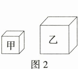(2)甲和乙两个质量相同的正方体,棱长分别为$a$和$b$,且$a < b$,如图2所示,则它们对水平地面的压力$F_甲$____$F_乙$,对地面的压强$p_甲$____$p_乙$。(两空均选填“>”“=”或“<”)