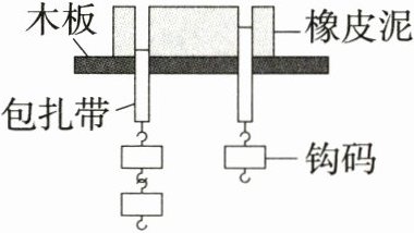 (2)小明想继续探究压力的作用效果跟受力面积的关系,应进行的操作:将橡皮泥捏回原状,把包扎带撕成____宽度的两段,两包扎带下方挂____数量的钩码(两空均选填“相同”或“不同”)。