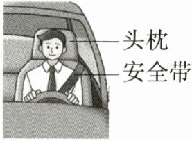 13.(2024广东佛山期末,11,★☆)当汽车突然加速或刹车,车内的人由于具有______容易受到伤害。如图所示,头枕和安全带______(选填“能”或“不能”)减小人的惯性,______(选填“头枕”或“安全带”)可以减小汽车被追尾时给人带来的伤害。