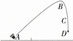 4.(2024河南商丘期末,13,★☆☆)小玉练习发高远球,羽毛球离拍后的飞行轨迹如图中曲线所示,BCD段是羽毛球的下落过程。下列有关说法错误的是 ( )