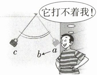 4.(2024河南周口模拟,11,★☆)如图所示,把一把铁锁用绳子悬挂起来,将铁锁拉到自己的鼻子附近(a点),稳定后松手,铁锁从a向前摆去,经b到c,再由c经b摆回时到不了a,铁锁不会打到鼻子。则铁锁 ( )