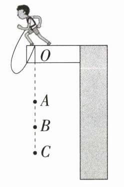 7.(2023辽宁锦州模拟,9,★☆)(多选)如图所示是蹦极运动的简化示意图,弹性绳一端固定在O点,另一端系住运动员,运动员从O点自由下落,A点处弹性绳自然伸直。B点是运动员受到的重力与弹性绳对运动员的拉力相等的点,C点是运动员到达的最低点,则运动员从O点到C点的运动过程中(忽略空气阻力) ( )