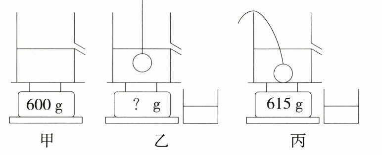 15.(新独家原创,★☆☆)(多选)如图所示,溢水杯是薄壁轻质容器,质量忽略不计,溢水杯中盛满水放在电子秤上,如图甲所示;把用细线悬吊的金属球浸没在溢水杯中,不接触容器底部,溢出水的质量为10 g,如图乙所示;撤去拉力,将金属球自由静止在溢水杯中,如图丙所示。(g取10 N/kg)请根据图中数据判断下列说法正确的是 ( )