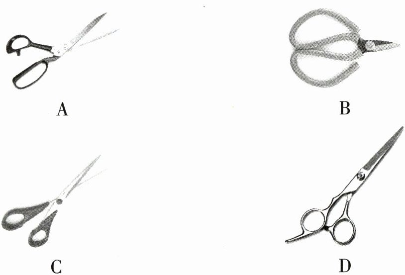 6.(跨学科 物理学与日常生活)(2024海南海口期末,7,★☆☆)各式各样的剪刀都是一对对杠杆。下列剪刀,最适合剪开较硬物体的是( )