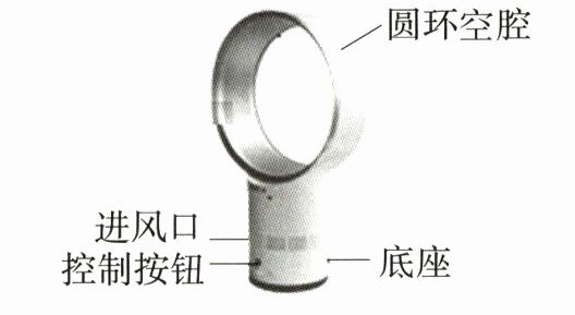 20.(跨学科 物理学与社会发展)(2024河南镇平模拟,5改编,★☆☆)如图所示,“无叶电风扇”的底座有一台电动机吸入空气,吸入的空气经过压缩后进入圆环空腔,再从圆环空腔上的缝隙中向外喷出。这部分喷出的空气因为流速大,压强______(选填“大”或“小”),使周围空气________(选填“靠近”或“远离”)这部分喷射空气,带动周围空气流动,使风量增加。
