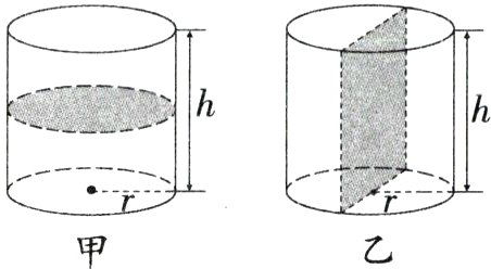 5. 如图是两位同学对同一个圆柱的两种不同的切分方法(都是平均分成两部分)。甲同学切分后,表面积比原来增加了( );乙同学切分后,表面积比原来增加了( )。