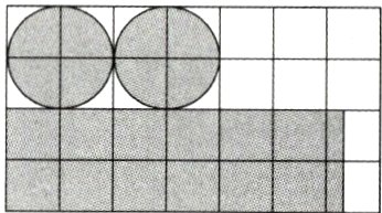2. 如图是一块长方形铁皮(每个小正方形的边长表示1分米),剪下图中的阴影部分正好可以围成一个圆柱,这个圆柱的体积是多少?(5分)