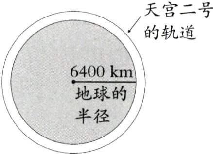 2. 新素材 创新题 天宫二号目标飞行器是我国自主研制的载人空间试验平台,它在距离地球约390 km高的圆形轨道上运转。已知地球的半径大约是6400 km,求天宫二号的轨道长多少千米。(5分)