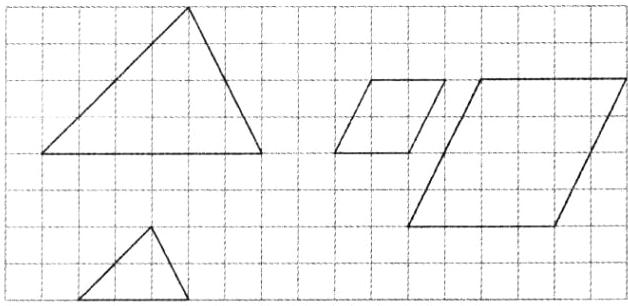 1. 先按1:2的比画出三角形缩小后的图形,再按2:1的比画出平行四边形放大后的图形。(6分)