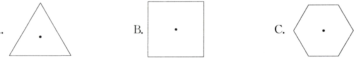 3. 下面的图形中,( )绕着中心点旋转60°后能和原图形重合。