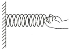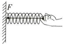 (图中为一端固定在墙上的弹簧,弹簧另一端有手在拉伸弹簧,弹簧上有拉力F)