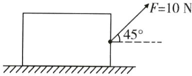 (图中为一长方体物块,在右上角受到与水平方向成45°角斜向右上方、大小F = 10 N的拉力)
