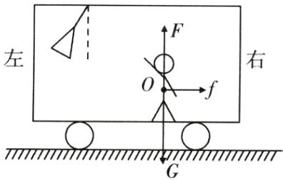 (图中为一个在车厢内的小球O,车厢内有摩擦力f,小球受到竖直向下的重力G,竖直向上的支持力F)