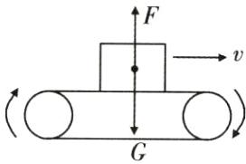 (图中为一个物块在传送带上向右运动,物块受到竖直向下的重力G,竖直向上的支持力F)